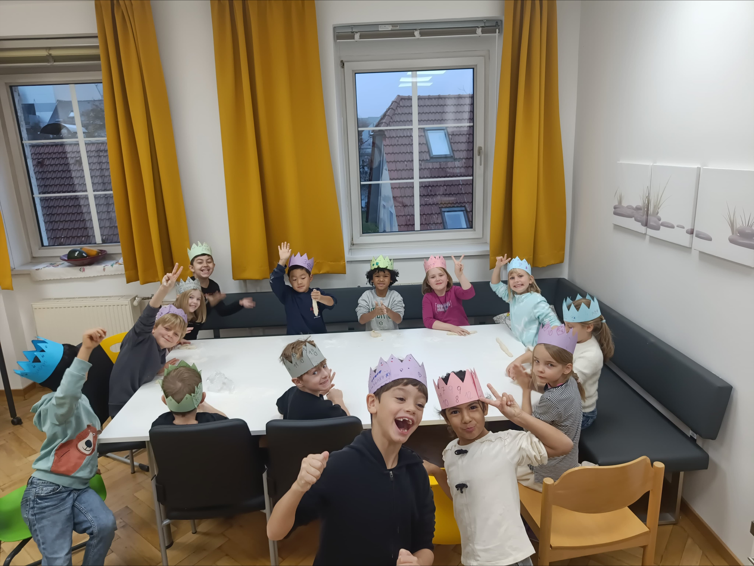 Die Kinder der 1b haben sichtlich große Freude mit dem „Jahreskreis“ (Jänner 2026)