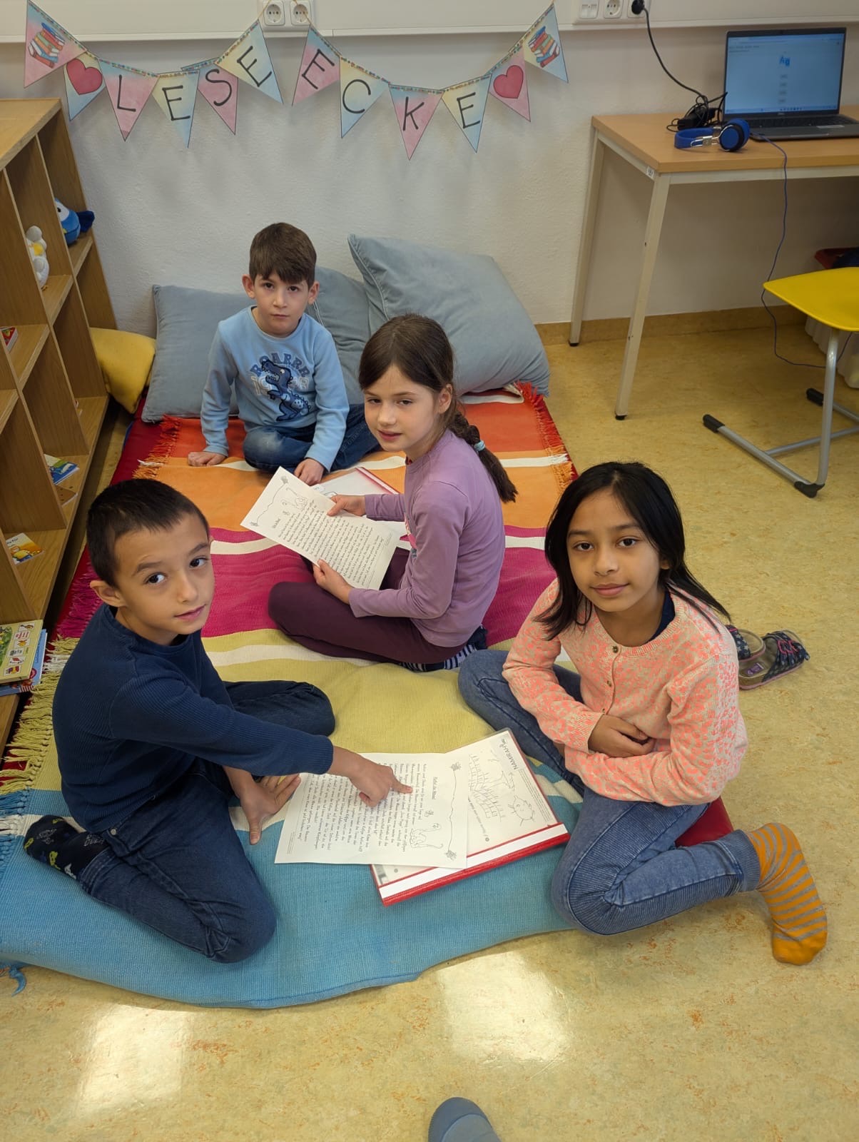 Die Kinder der 4a lasen den Kindern der 1a vor. Dabei wurden die Kinder selbst kreativ und wurden fast zu kleinen Theaterspielern!